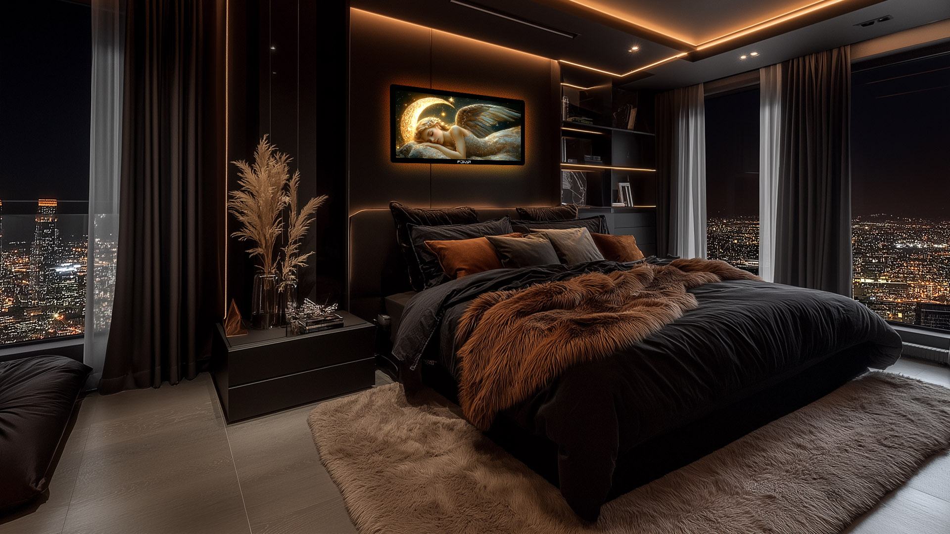 Using the FOXAR panel in the bedroom helps to create a relaxing and calm environment. The soft lighting contributes to a good night's sleep and a pleasant wake-up.