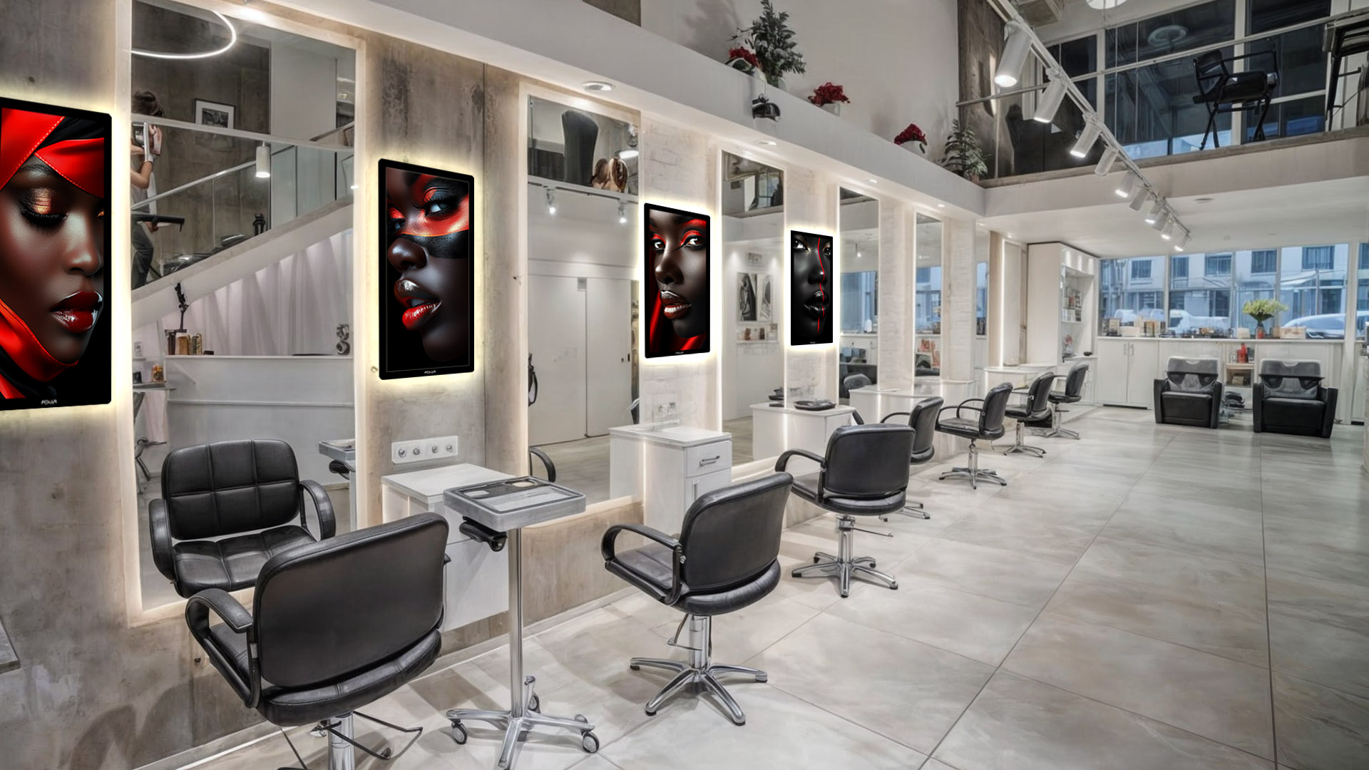 - Promotional Displays – Lightboxes showcase haircut styles, pricing, and special offers.