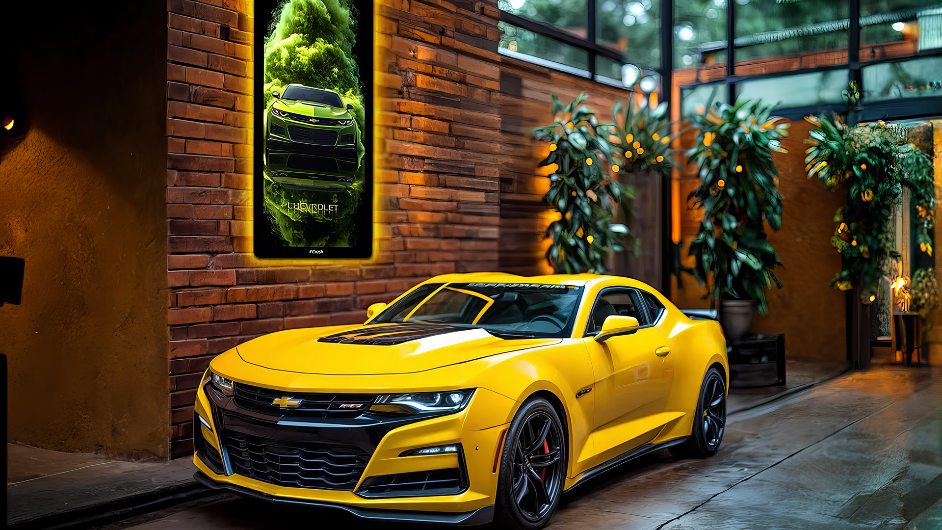 - Automotive Décor LED light panels featuring iconic cars, racing scenes, and premium brand logos (Lamborghini, Ferrari, Porsche) create a high-end, exclusive atmosphere.